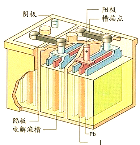 隔板是电池内部的关键组件,它可以是水隔板、玻璃纤维隔板、微孔橡胶隔板或塑料隔板等类型。其主要功能是储存电解液、提供气体通道,同时确保正负极间最小的距离以防止短路。此外,隔板还能防止极板的变形和活性物质的脱落,因此要求其具有高度多孔性、耐酸性、良好的绝缘性和机械强度。